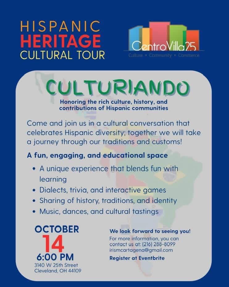 El martes 14 de octubre, la ciudad de Cleveland abrirá sus puertas a una experiencia que busca mucho más que entretener. Culturiando, organizado por la líder comunitaria Iris Cartagena, se presenta como un viaje que conecta, la identidad y el orgullo de ser hispano en todas sus formas.